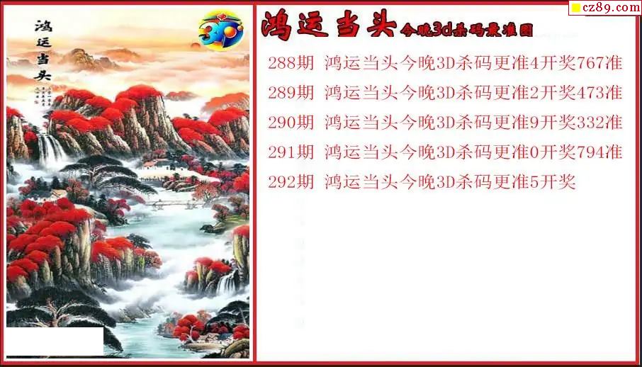 > 25年292期3d 鸿运当头今晚杀码更准图