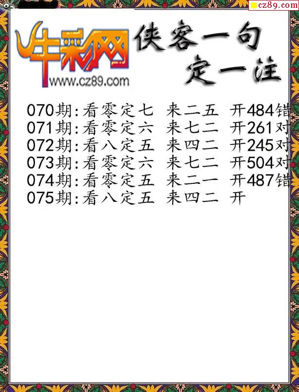 > 福彩3D2026075期侠客一句定三码字图谜