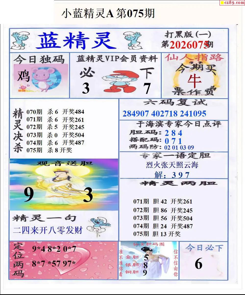 福彩3D2026075期蓝精灵AB版图谜