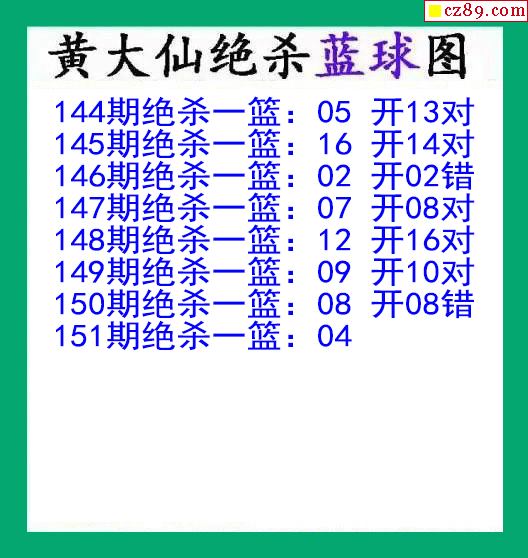 > 黄大仙杀蓝球151期双色球图谜