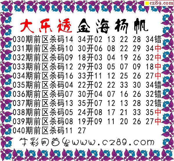 > 大乐透2026040期金海扬帆前区杀号图谜 10中6