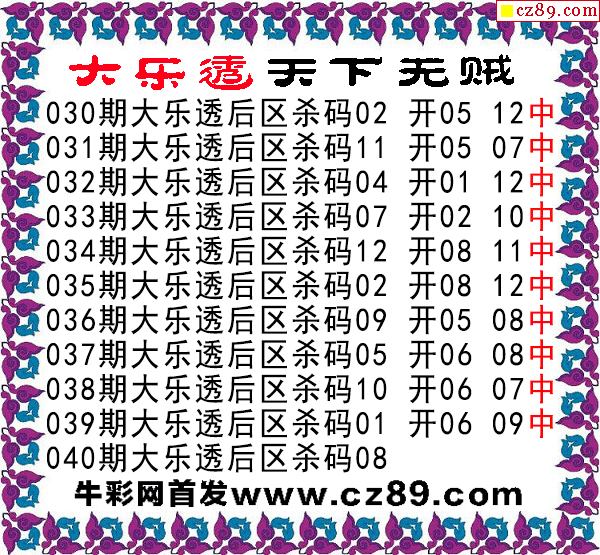 大乐透2026040期天下无贼后区杀号图谜 10中10