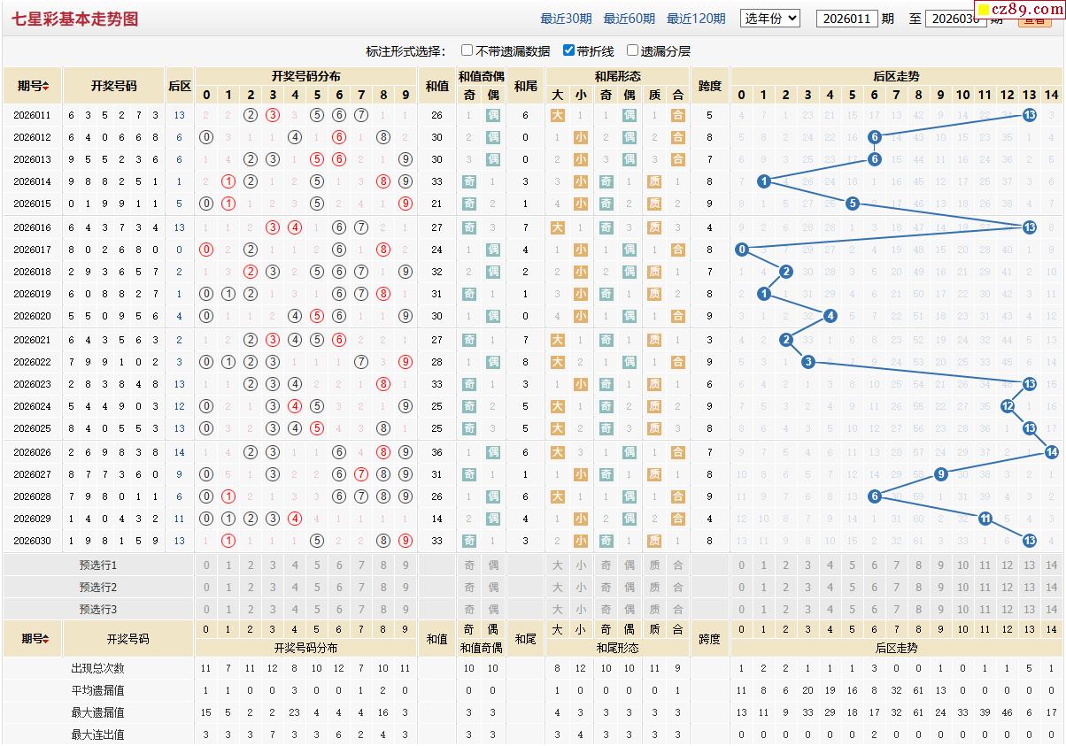 > 26年031期体彩七星彩近期走势图分析