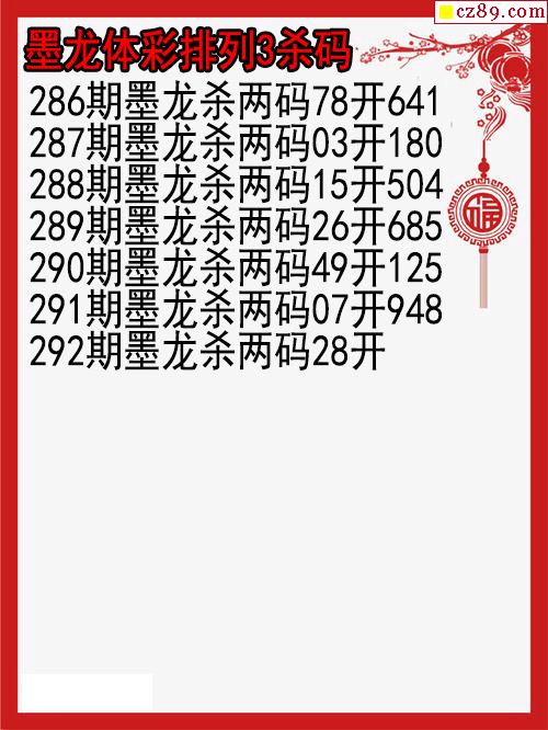 25年292期墨龙体彩排列3杀码图